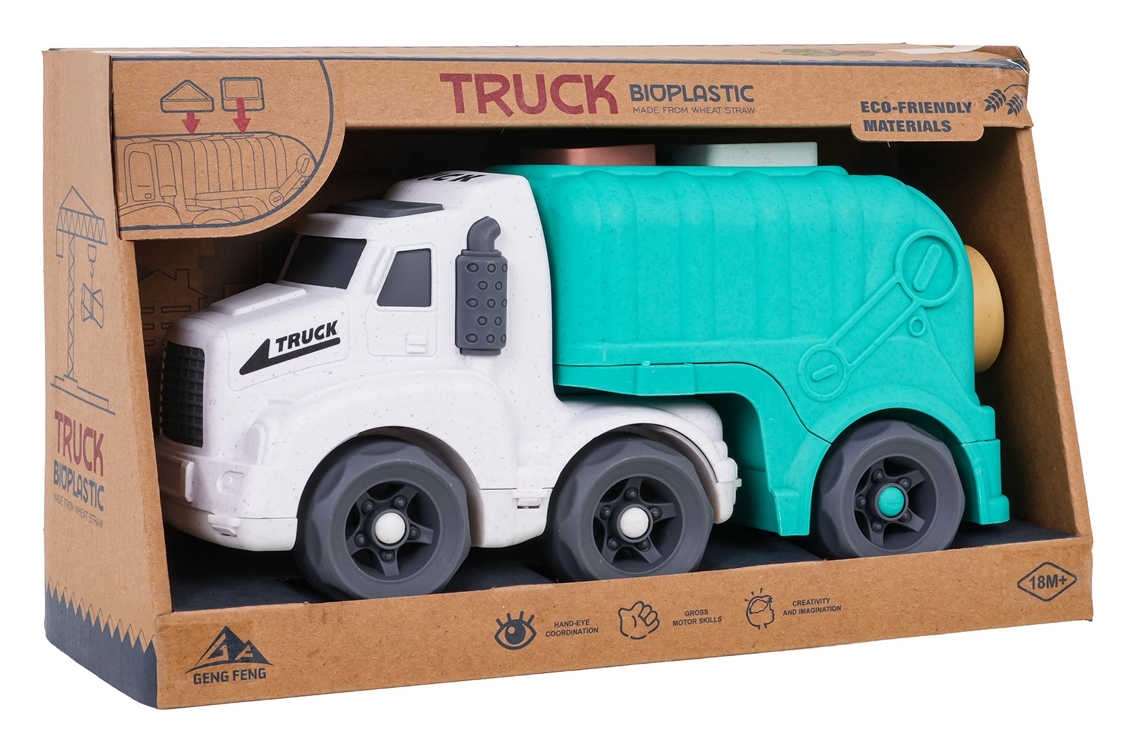 Scopri un giocattolo divertente e sostenibile per i più piccoli: il camion della spazzatura realizzato in bioplastica di alta qualità. Grazie all’ordinatore di forme sul tetto e sul portellino posteriore, i bambini esercitano il riconoscimento di forme e colori, mentre le ruote mobili invitano a un gioco dinamico e creativo. Il portellino posteriore apribile consente un rapido accesso ai mattoncini e un facile ripetersi del gioco.