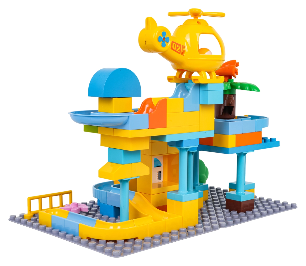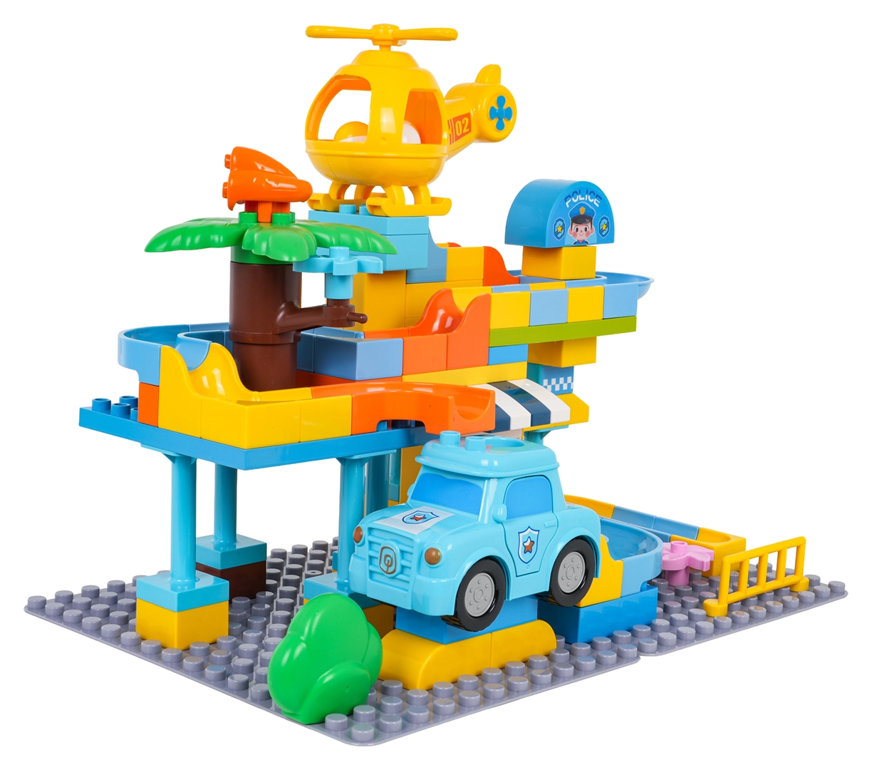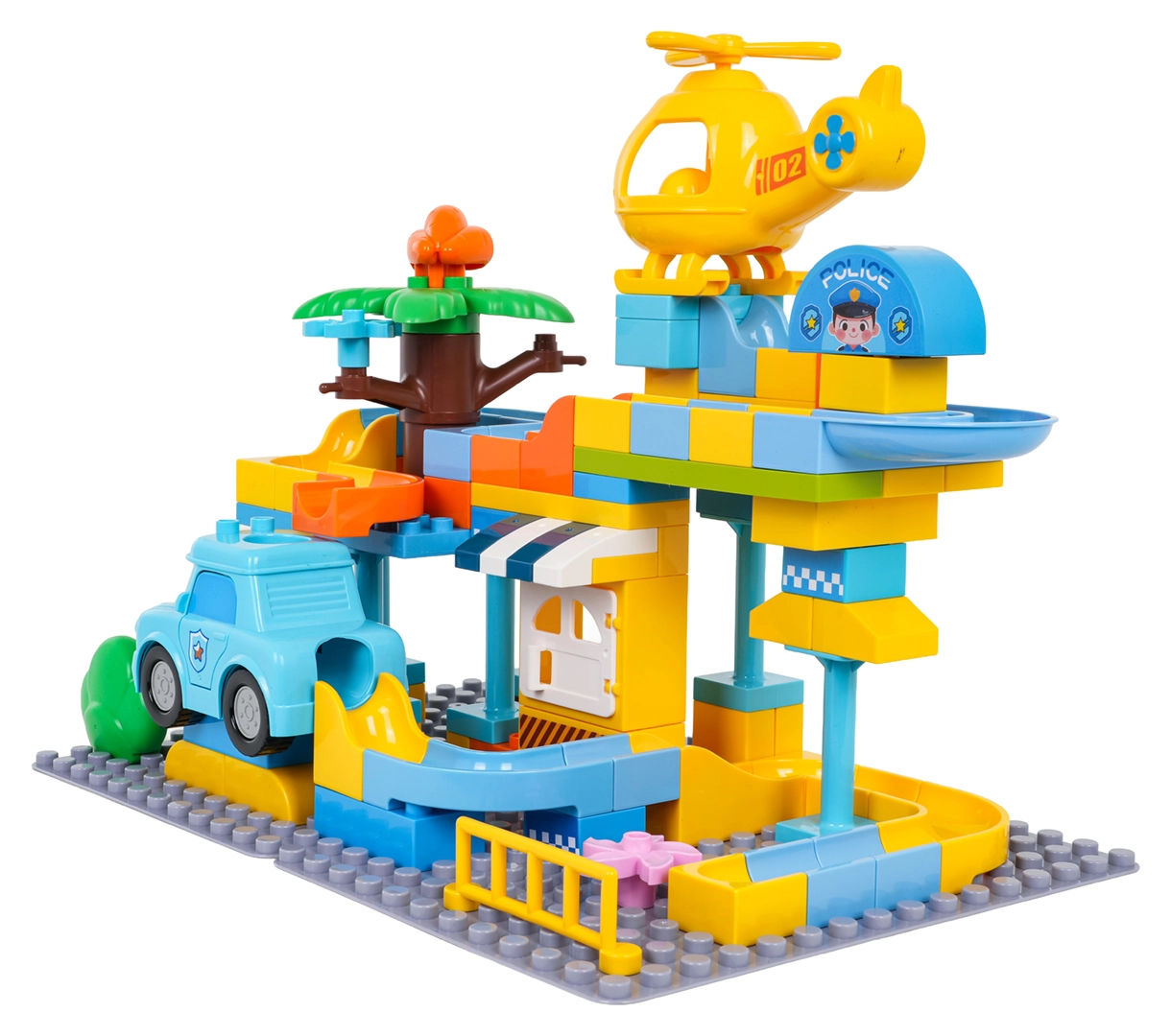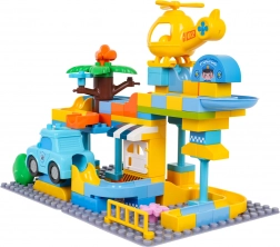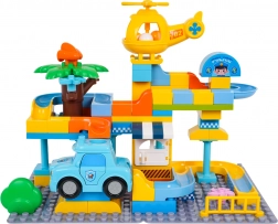 Colorato set di costruzioni stazione di polizia per bambini dai 3 anni che offre un divertimento creativo con semplice incastro dei mattoni e una struttura stabile. Include macchinina della polizia, elicottero giallo, scivolo divertente e 3 palline che possono volare attraverso la macchinina e l’elicottero. Ideale per sviluppare fantasia, motricità e creatività.