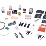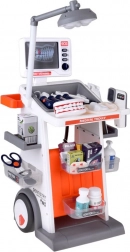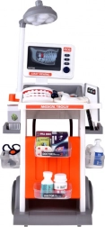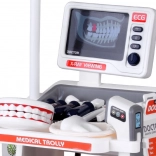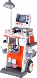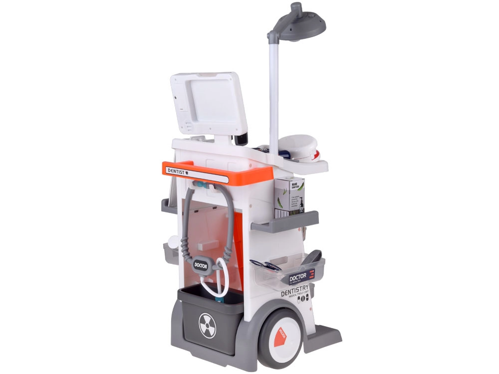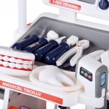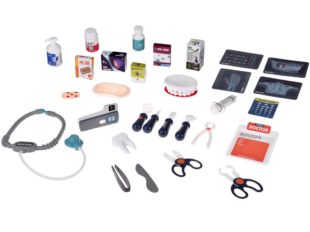 Inclusa un’ampia gamma di accessori: stetoscopio, termometro, specchietto dentistico con LED, pinzette, forbici, spazzolino, capsule, scatoline “di medicine”, modello di mascella apribile e “dente” separato, scheda ECG e schede radiografiche. Grazie alla struttura mobile e ai ripiani portaoggetti, il set è ideale per il gioco condiviso e per mantenere l’ordine.
