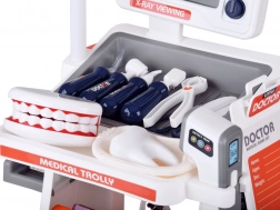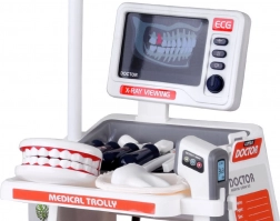 Trasformate la cameretta in un piccolo ambulatorio. Il carrello interattivo con monitor “X-Ray/ECG”, lampada, scomparti e ruote piroettanti offre un gioco autentico da dottore e dentista. I bambini possono ascoltare il cuore, “fare i raggi X” al paziente, controllare i denti con il modello di mascella e provare in sicurezza le operazioni più comuni. Realistici effetti luminosi e sonori intensificano l’esperienza e motivano all’esplorazione.