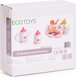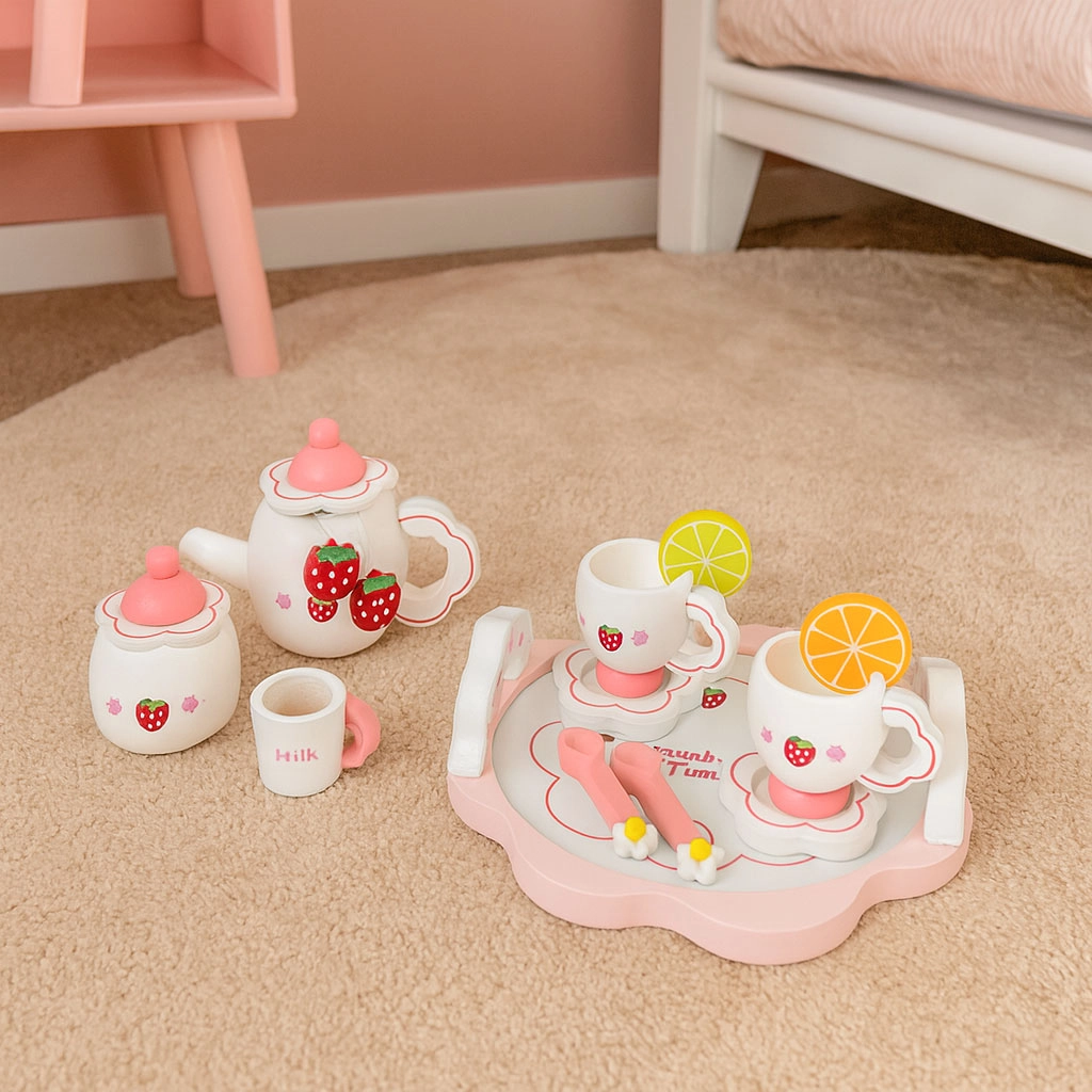 Il grazioso set da tè in legno ECOTOYS offre ai bambini dai 3 anni ore di gioco creativo. Include 14 pezzi finemente lavorati, tra cui teiera, tazzine, piattini e accessori con motivo alla fragola. Tutto è realizzato in legno naturale con bordi arrotondati per un gioco sicuro, perfetto per la cucina, il negozietto o il caffè dei bambini e ideale per sviluppare fantasia, empatia e abilità sociali.