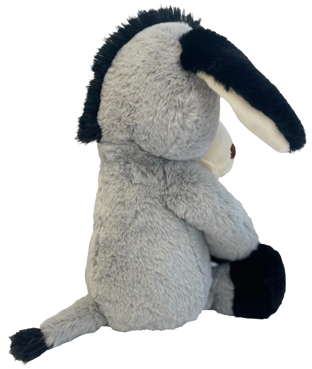 Il grazioso asinello di 40 cm conquista con la sua espressione dolce e il morbido manto. Realizzato in materiale soffice e coccoloso con dettagli ricamati sicuri, è ideale per i bambini e come regalo per gli amanti degli animali.