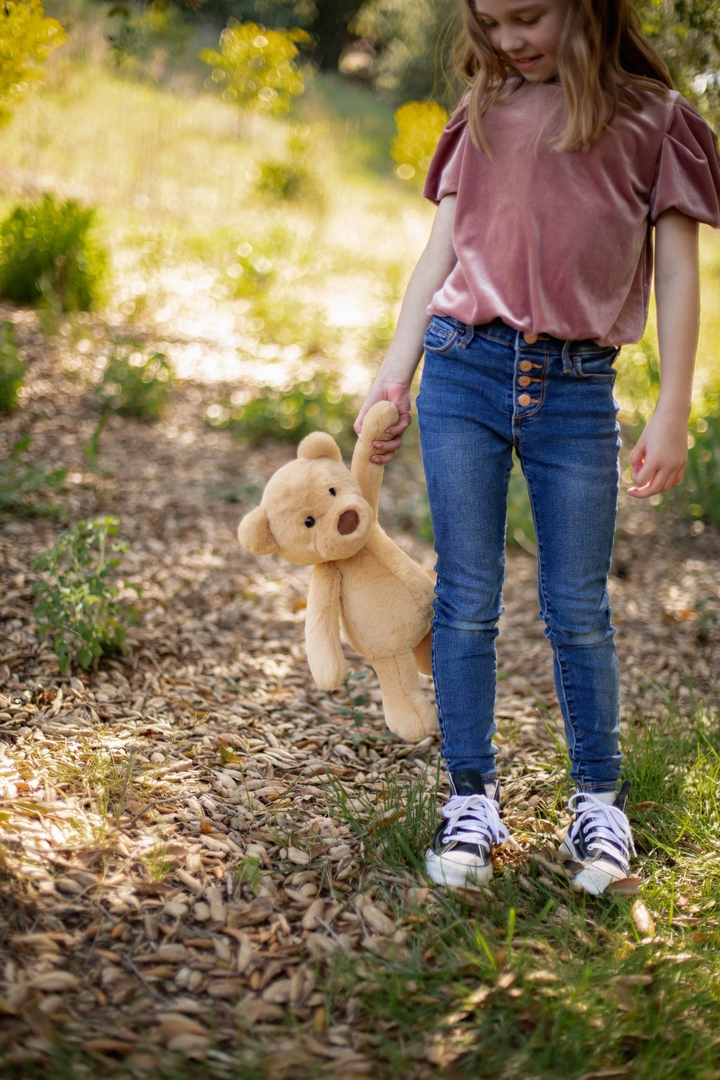 Il bambino può portare facilmente l’orsetto ovunque – a passeggio, in gita o all’asilo.