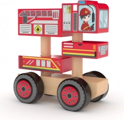Scopri il mondo dei soccorritori con questo bellissimo puzzle in legno a forma di camion dei pompieri. Il giocattolo è realizzato con materiale naturale di alta qualità, sicuro e resistente. Supporta lo sviluppo della motricità fine, il pensiero logico e la coordinazione occhio–mano. I pezzi colorati si incastrano facilmente al loro posto e i bambini imparano in modo naturale a riconoscere forme, colori e mezzi di trasporto.