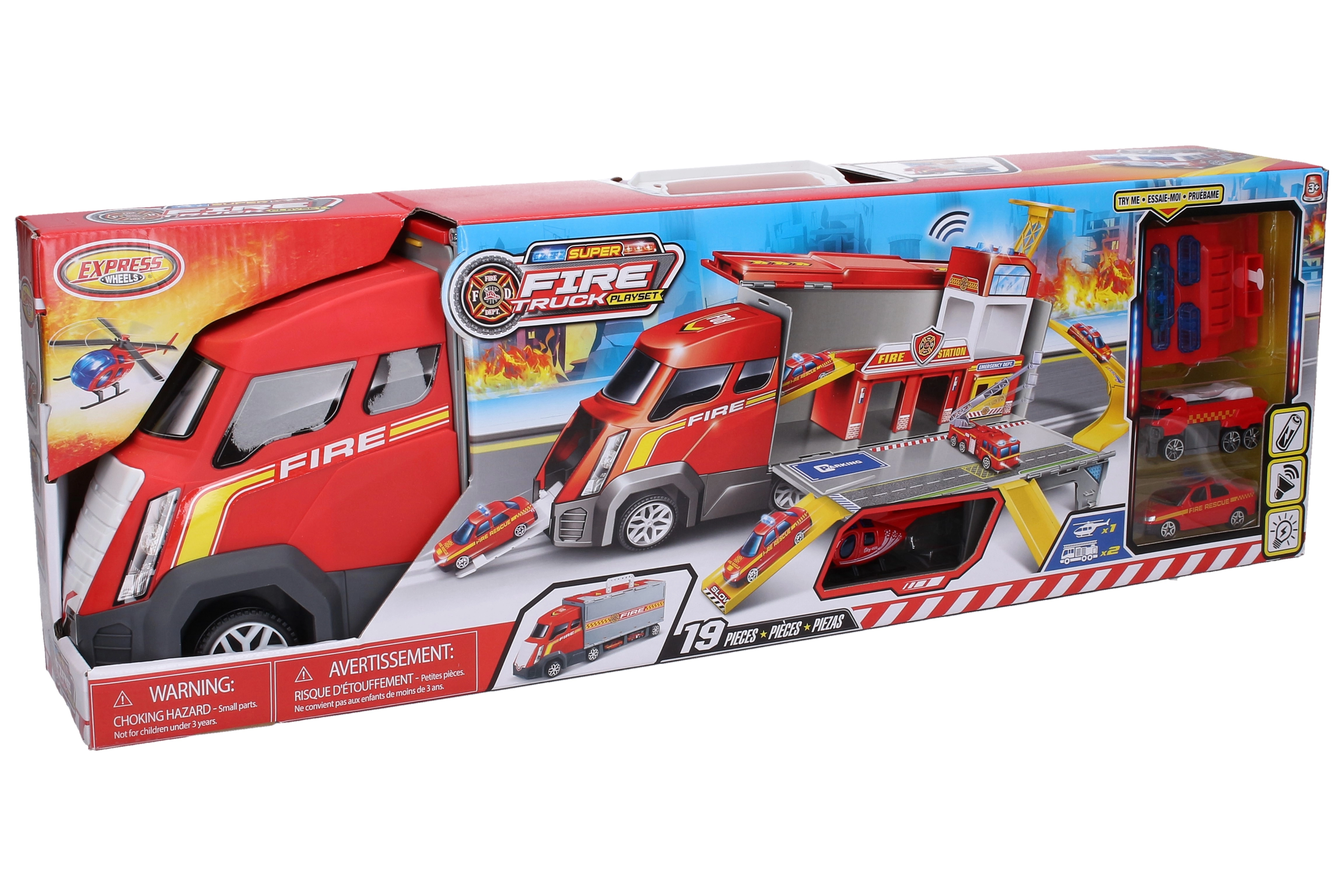Scopri un divertente giocattolo per piccoli pompieri: un camion pieghevole che si trasforma in una stazione dei pompieri lunga 46 cm. Offre effetti luminosi e sonori per un gioco ancora più realistico e stimola fantasia e motricità dei bambini.