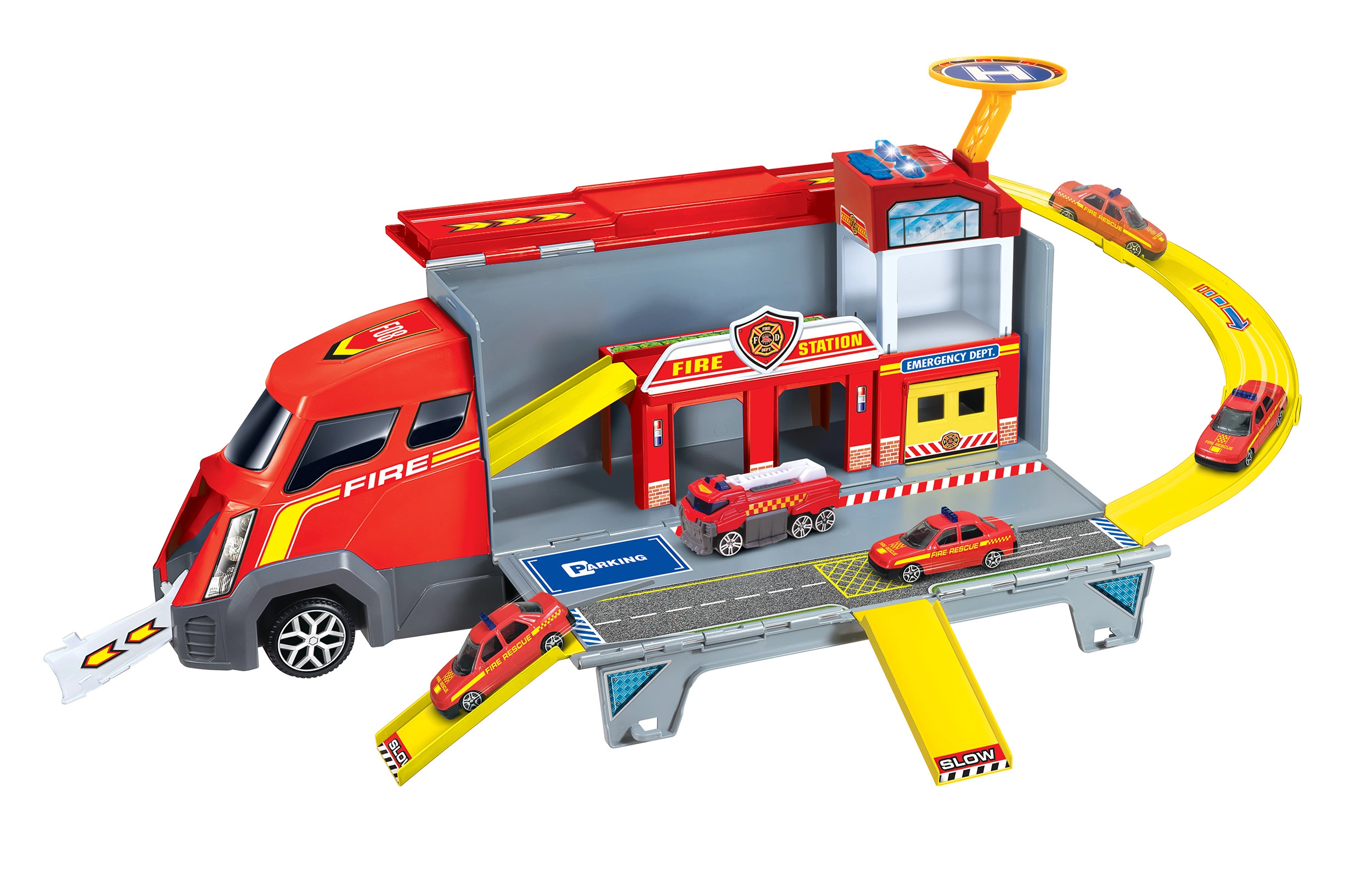 - 2 in 1: camion e stazione dei pompieri pieghevole