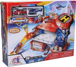 Costruisci la tua base dei pompieri e parti per l’azione! Questa stazione dettagliata con garage ha 2 piani, un ascensore funzionante e rampe per un’uscita rapida. Grazie ai portoni basculanti, il veicolo d’emergenza è subito pronto all’intervento, mentre l’elicottero decolla dal tetto.