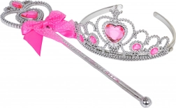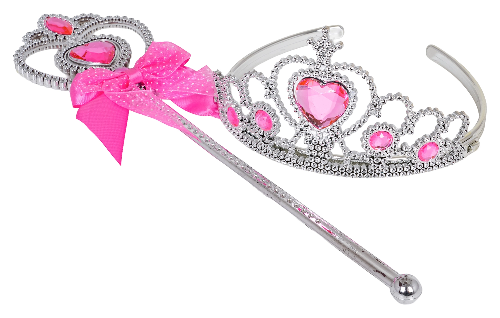 La corona argentata con pietrine rosa e la bacchetta coordinata donano al costume uno splendore regale e stimolano la fantasia nei giochi di ruolo.