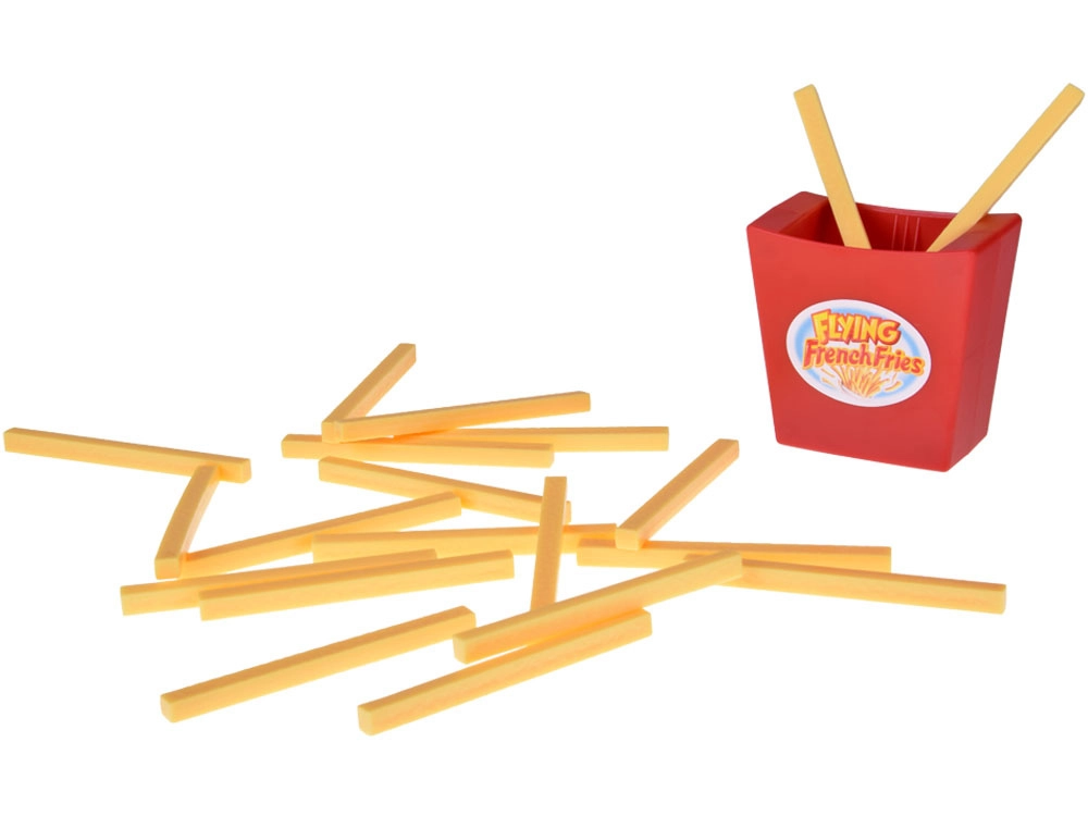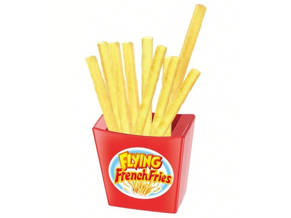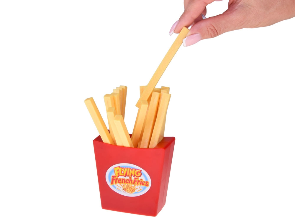 Premi il meccanismo, riempi il bicchiere e estrai le patatine una alla volta. Un solo errore farà scattare il lancio e scatenerà fragorose risate.