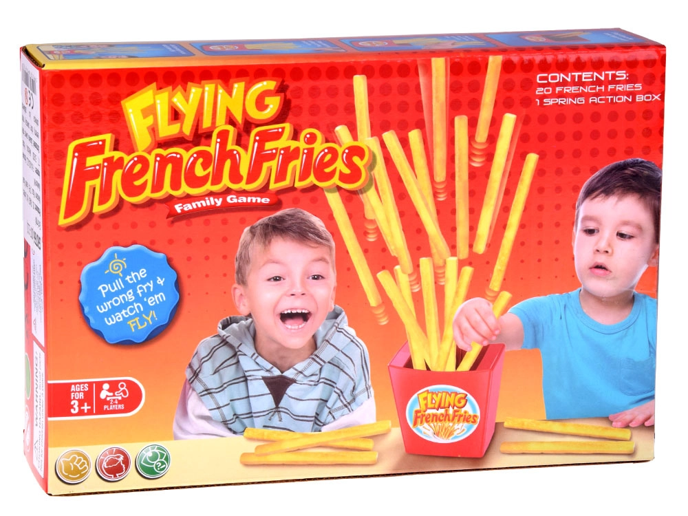 Il gioco Patatine Volanti è la scelta ideale per serate in famiglia, feste di compleanno e party per bambini. Premi il meccanismo nel bicchiere rosso di design, riempilo con le patatine e i giocatori le estraggono a turno una alla volta. Chi fa scattare il lancio delle patatine perde il round – semplice, avvincente e garantitamente divertente.
