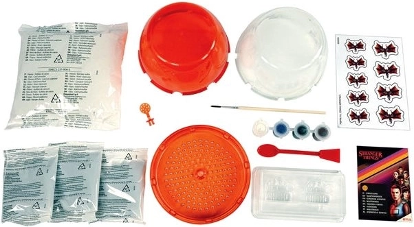 Nella confezione trovi tutto il necessario per creare e coltivare: dal contenitore e i semi, alla terra e al gesso, fino alle forme e ai colori a tempera. Potrai realizzare passo dopo passo una decorazione originale ispirata al mondo del Sottosopra, ideale per i fan della serie e per gli amanti dei progetti creativi.