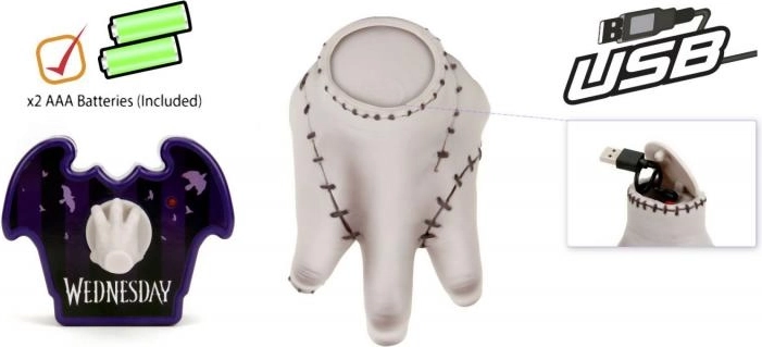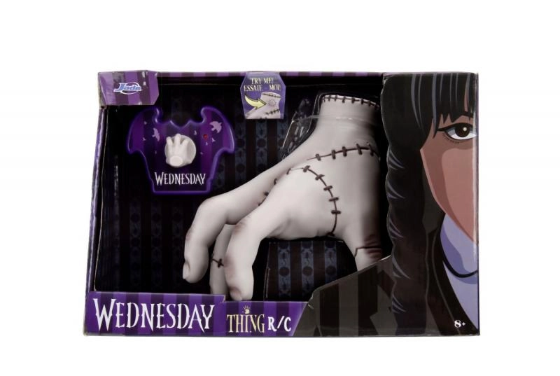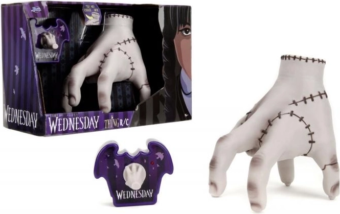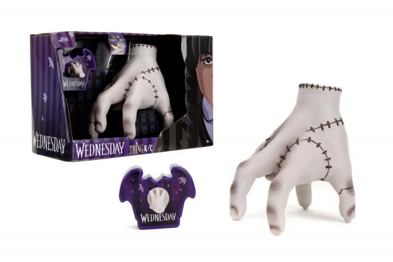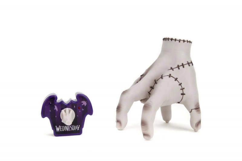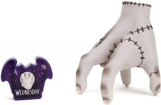 Scopri l’iconico personaggio Thing dalla serie WEDNESDAY come divertente figura radiocomandata alta 16 cm del marchio Jada Toys. Include un elegante controller viola a forma di pipistrello con una piccola manina come joystick. Basta inserire le batterie, premere la parte superiore del giocattolo e la mano inizierà a muoversi – il regalo perfetto per bambini e adulti fan della serie.