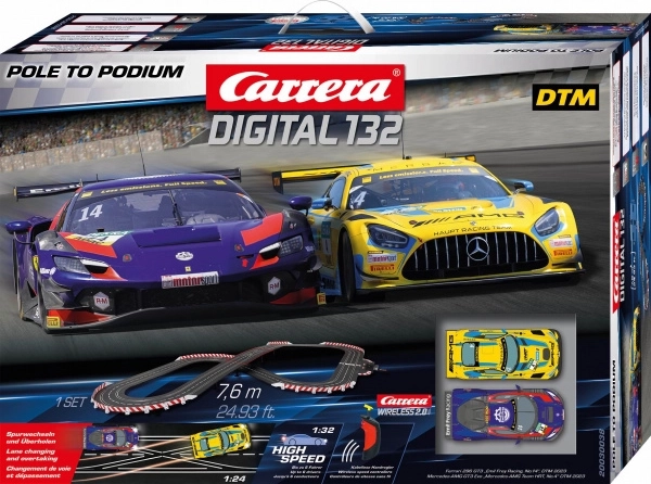 Goditi l’adrenalina delle gare DTM direttamente in salotto. La pista digitale Carrera DIGITAL 132 “Pole to Podium” combina rettilinei veloci, curve tecniche e speciali sezioni di sorpasso per momenti di corsa autentici. Le auto in scala 1:32 offrono finiture dettagliate e ottime prestazioni grazie a doppie spazzole e magnete.