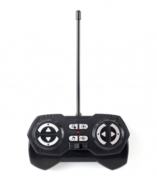 Trasmettitore ergonomico con chiari pulsanti direzionali e funzioni per controllare facilmente il robot e le sue braccia.