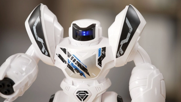 Il robot è dotato di volto LED, effetti sonori e lanciaproiettili per un'esperienza di gioco ancora più intensa. Gambe stabili, braccia snodate e costruzione resistente garantiscono una postura sicura e lunga durata anche nelle missioni più movimentate.