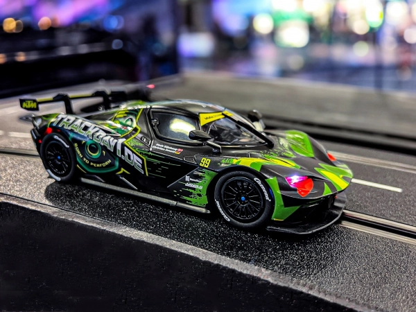 Il modello KTM X-BOW GT2 “Trackday1.de” è un'auto da corsa dettagliata per i sistemi Carrera Digital 132, ideale per piloti domestici e appassionati di messa a punto della dinamica di guida. Grazie ai potenti magneti, alla precisa pinna guida e ai doppi spazzolini, potrai godere di una guida stabile e passaggi in curva fluidi.