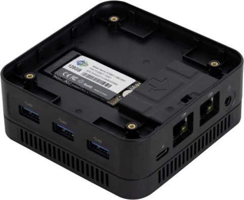 Il mini PC offre ampie possibilità di collegamento: due porte HDMI e una DisplayPort consentono un comodo uso di più monitor; alla rete ci si collega tramite due porte LAN Gigabit o Wi‑Fi AC dual band. L’SSD M.2 da 128 GB, veloce e facilmente sostituibile, garantisce reattività del sistema e delle app, mentre 3× USB 3.0 offrono spazio sufficiente per le periferiche. In confezione trovi anche il supporto VESA per un’installazione elegante dietro il monitor o sotto la scrivania.