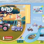 Fai conoscere ai tuoi bambini il mondo delle corse con la pista Carrera First con licenza BLUEY. Il tracciato in scala 1:50 si monta facilmente grazie al sistema a clip e rimane stabile con i solidi supporti. Le due macchinine colorate Bluey e Bingo, con magnete e spazzole di contatto, mantengono perfettamente la traiettoria e affrontano senza problemi le divertenti eliche del percorso.