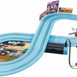Goditi le prime esperienze di gara con la pista Carrera First a tema BLUEY e BINGO. Il tracciato compatto lungo 2,4 m offre rettilinei, curve e divertenti eliche, due macchinine, comandi velocità e un montaggio semplice. Ideale per bambini dai 3 anni, funziona con batterie 4× C.