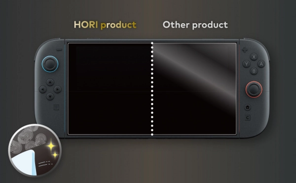La pellicola protettiva premium HORI per Nintendo Switch 2 con avanzato trattamento antiriflesso garantisce una notevole riduzione dei riflessi, una protezione di alto livello per il display e la piena sensibilità al tocco. Grazie al rivestimento oleofobico si pulisce facilmente, i ritagli di precisione assicurano un adattamento perfetto e la licenza NINTENDO è garanzia di compatibilità e qualità.