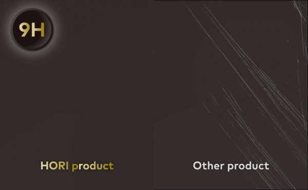 - Durezza 9H – resistenza ai graffi causati da chiavi, monete e altri oggetti.