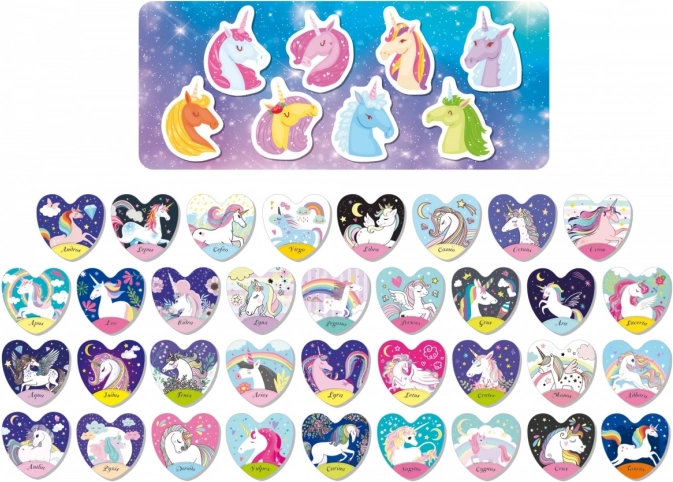 Il Cuoricino Magico Unicorn è un set da collezione incantato che entusiasmerà tutti gli amanti degli unicorni e dei mondi colorati. Aprendo il pratico cuore di plastica ti aspettano 7 carte originali con personaggi dall’universo Unicorn. Grazie a una collezione di oltre 40 carte, è un piacere scoprire nuovi soggetti, completare l’album e scambiare le carte con gli amici.