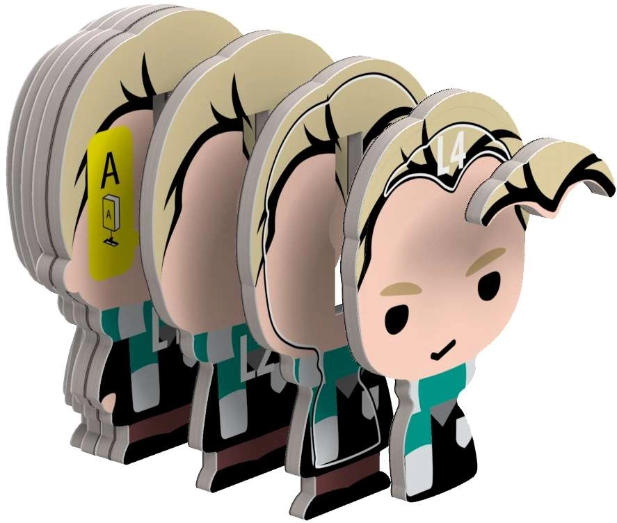 Carta colorate e supporti dei personaggi creano un’atmosfera autentica del mondo magico e una giocabilità chiara.