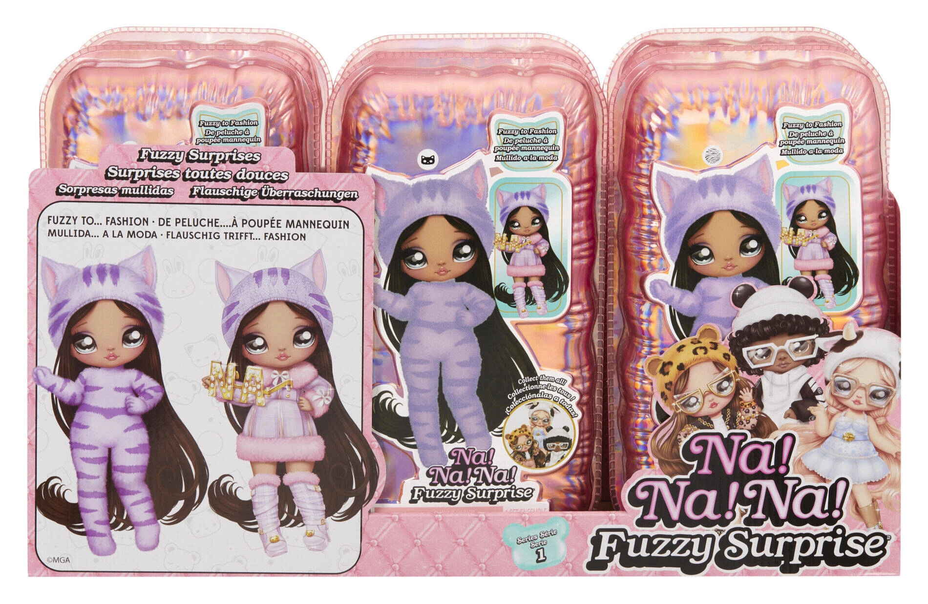 Scopri l'apertura a sorpresa divertente con la collezione Na! Na! Na! Surprise Fuzzy Surprise – una bambola morbida da 19 cm con splendidi capelli e una borsetta di peluche a forma di animaletto, facilmente agganciabile allo zaino. Questo concetto 2 in 1 unisce giocattolo e accessorio di stile ed è un regalo perfetto per bambini dai 5 anni.