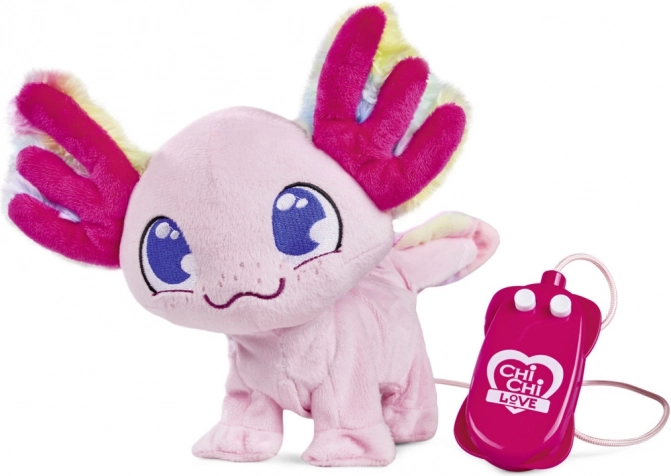Scopri un mondo incantato con l’axolotl interattivo CHI CHI LOVE. Questo peluche alto 20 cm, in un delicato rosa con branchie arcobaleno e grandi occhi ricamati, affascina al primo sguardo. Il controllo tramite telecomando con cavo funziona anche come guinzaglio, così l’axolotl si guida facilmente e risponde con movimenti e suoni.