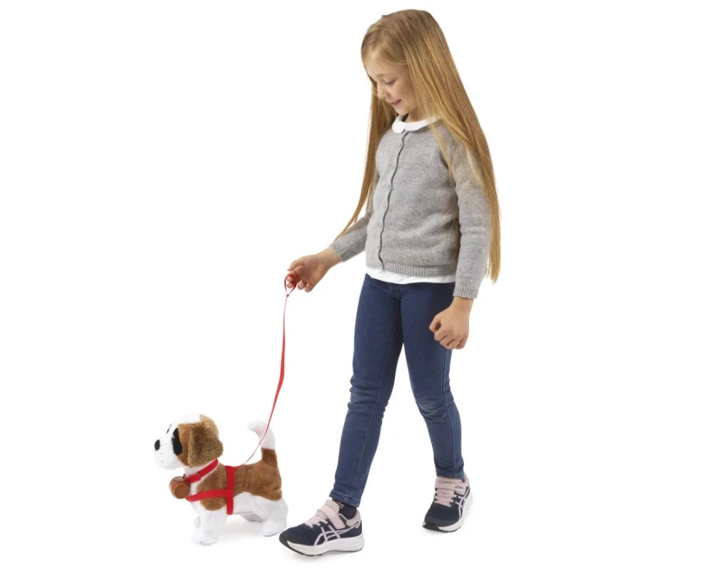Basta battere le mani e Samby si mette in movimento. Con il guinzaglio incluso i bambini possono portarlo a spasso come un vero cagnolino.