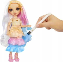 Trasforma ogni giorno in un'avventura di design. Il set include sei polveri colorate lavabili nelle tonalità rosa, arancione, giallo, verde, blu e viola: miscelate con acqua diventano acquerelli intensi adatti per gli abiti e i capelli bianchi della bambola. Con la spugnetta a doppia faccia, gli elastici e gli stencil crei facilmente spirali, scrunch e altri motivi tie-dye. Il design finito si può lavare via con acqua e sapone e ricominciare da capo.