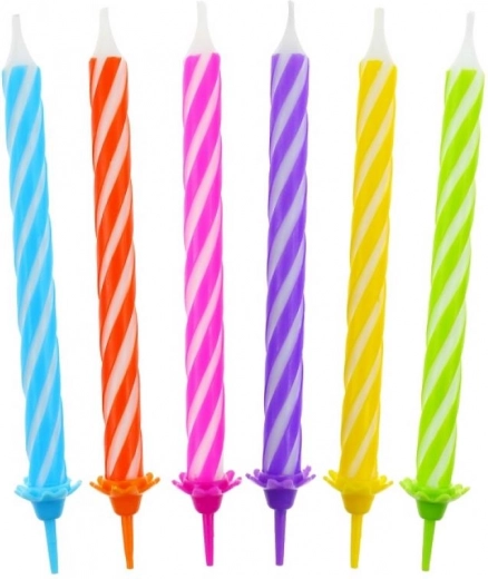 Le eleganti candeline di compleanno con motivo a spirale di GODAN illumineranno ogni torta e daranno alla festa un'atmosfera unica. La confezione include 24 candeline in sei colori vivaci e 12 supporti per un posizionamento stabile. L'altezza di 6 cm garantisce un'ottima visibilità senza risultare eccessiva.