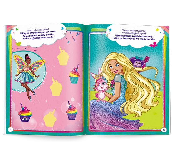 Entra nel mondo fiabesco di BARBIE Dreamtopia, dove ogni pagina porta una nuova avventura. I bambini possono creare le proprie storie, decorare le scene e sviluppare l’immaginazione con l’aiuto di due fogli di adesivi con effetto scintillante. Le attività sono progettate per adattarsi alle capacità dei bambini dai 4 ai 7 anni: divertenti, chiare e motivanti.