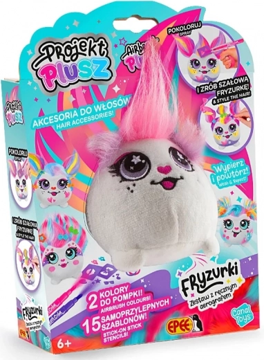 Sviluppa la fantasia dei bambini con il set creativo Projekt Plusz Fryzurki – Rosetta. I piccoli possono, grazie al aerografo manuale, alle stencil e ai colori lavabili, progettare e decorare il proprio peluche, che può essere nuovamente personalizzato dopo il lavaggio. Il set favorisce creatività, motricità fine e offre divertimento riutilizzabile per bambini dai 6 anni in su.