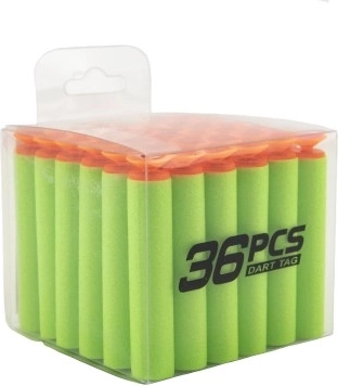 Rifornisci le tue blaster a schiuma con il pratico set di 36 dardi di ricambio con ventosa in scatolina trasparente. I dardi in morbida schiuma sono sicuri per il gioco, compatibili con le comuni pistole giocattolo e, grazie al box portatile, hai scorte sempre a portata di mano.