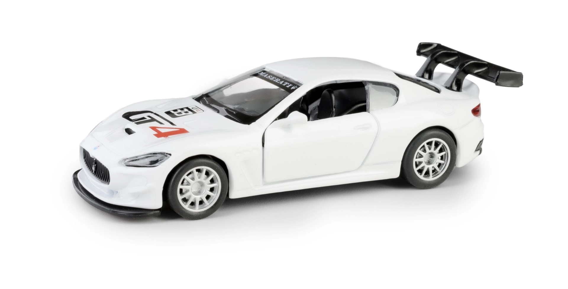 Modello in metallo dettagliato MASERATI GranTurismo MC GT4 in scala 1:43 che entusiasmerà bambini e collezionisti. Offre porte laterali apribili, meccanismo a retrocarica (pull‑back) e pneumatici in gomma per un aspetto realistico e una guida fluida. Lavorazione precisa, materiali di qualità e certificazione CE garantiscono un gioco sicuro dai 3 anni in su.