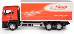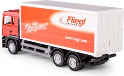 Cabina MAN TGS e rimorchio FLIEGL dettagliati con stampe autentiche e più assi, ideali per bambini e collezionisti.