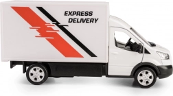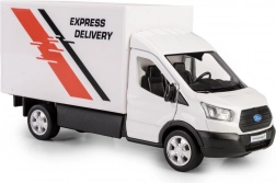 Questo modello bianco del furgone FORD Transit 2018 è una replica realizzata con precisione del veicolo reale. La combinazione di metallo e plastica assicura resistenza e aspetto fedele, mentre le porte apribili consentono di ammirare interni dettagliati. Grazie ai pneumatici in gomma e alla vernice automobilistica di qualità, il modello risulta molto realistico.