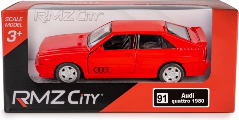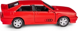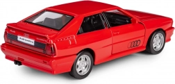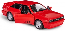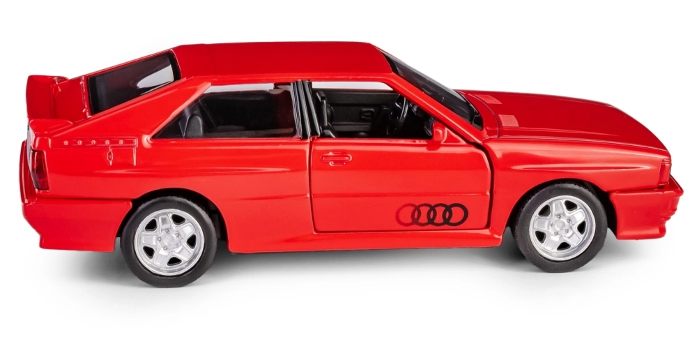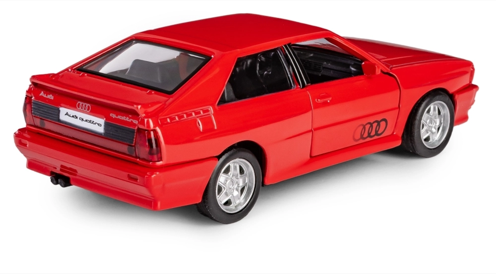 Vernice lucida, linee di carrozzeria accurate, loghi e cerchi argentati esaltano lo stile iconico di AUDI QUATTRO.