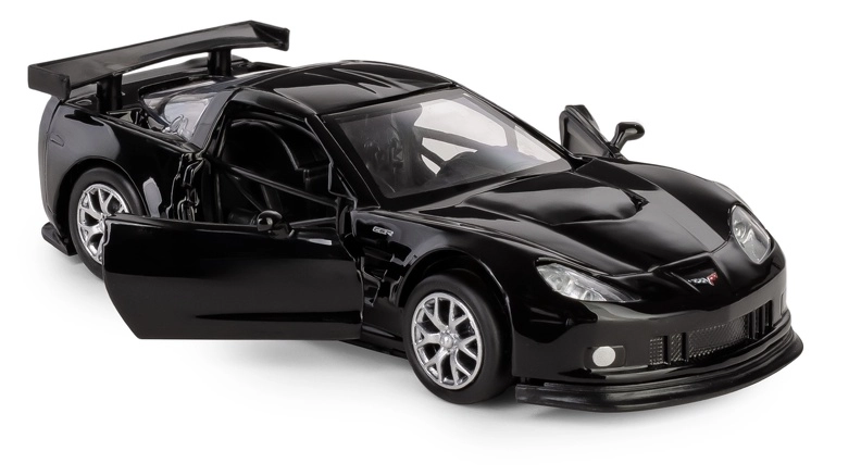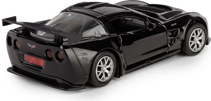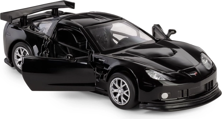 Modello dettagliato dell'auto da corsa Chevrolet Corvette C6-R in scala 1:32 che farà felici collezionisti e bambini. Carrozzeria in metallo con inserti in plastica, porte apribili e meccanismo pull-back garantiscono divertimento e autenticità. Grazie alla licenza ufficiale e alla lavorazione precisa, riproduce fedelmente l'aspetto dell'originale.