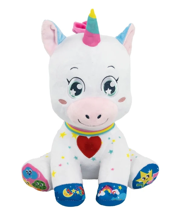 L’unicorno di peluche interattivo è un ottimo compagno per le prime scoperte. Grazie ai cinque pulsanti intelligenti, i bambini imparano in modo giocoso lettere, numeri, forme e colori, mentre melodie allegre e filastrocche sviluppano l’ascolto e il lessico. Il viso che si illumina e il corno luminoso catturano l’attenzione e favoriscono la stimolazione visiva.