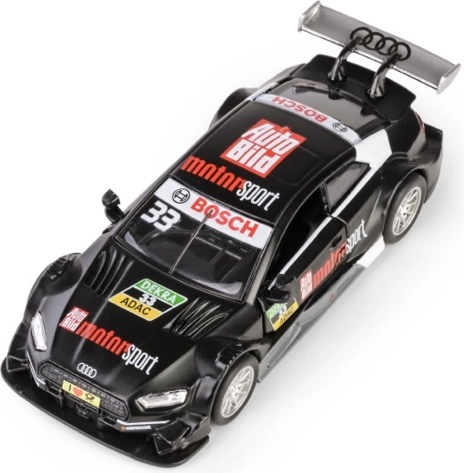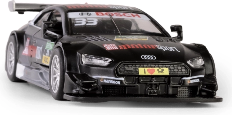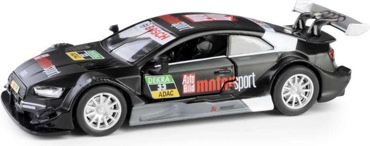 Modello del veicolo AUDI RS 5 DTM in scala 1:43 realizzato con precisione, ideale per collezionisti e bambini. La carrozzeria in metallo con dettagli in plastica riproduce fedelmente il design sportivo e, grazie alle porte apribili e al meccanismo a retrocarica (pull-back), offre un'ottima interattività. Prodotto con licenza che rispetta le norme di sicurezza europee, adatto ai bambini dai 3 anni.