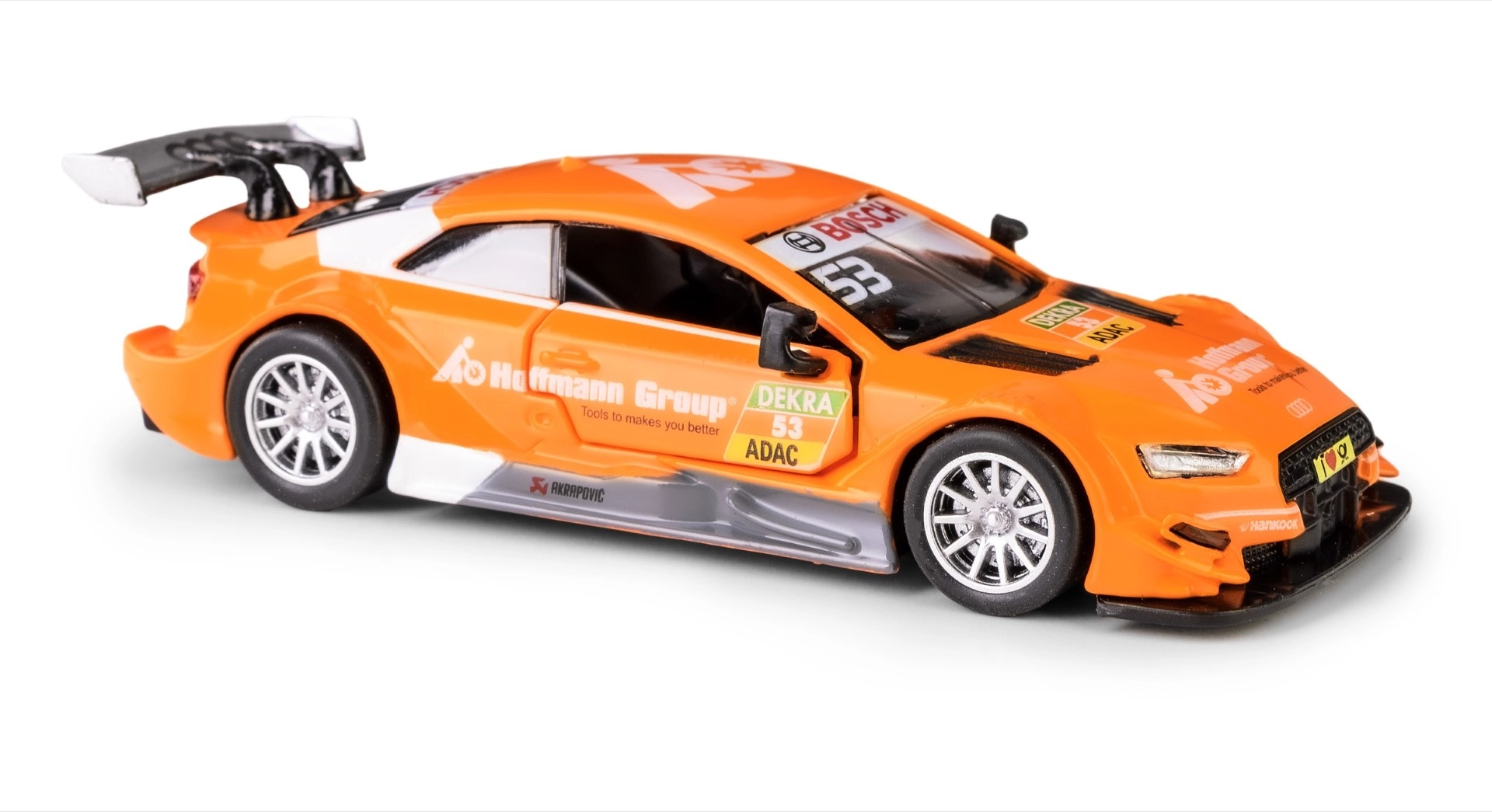 Goditi la replica dettagliata della vettura da competizione AUDI RS 5 DTM in scala compatta 1:43. Il modello in vivace colore arancione combina un aspetto realistico con funzioni pratiche che piaceranno a bambini e adulti. Le portiere apribili rivelano un interno accuratamente rifinito e gli pneumatici in gomma garantiscono ottima stabilità durante la marcia.