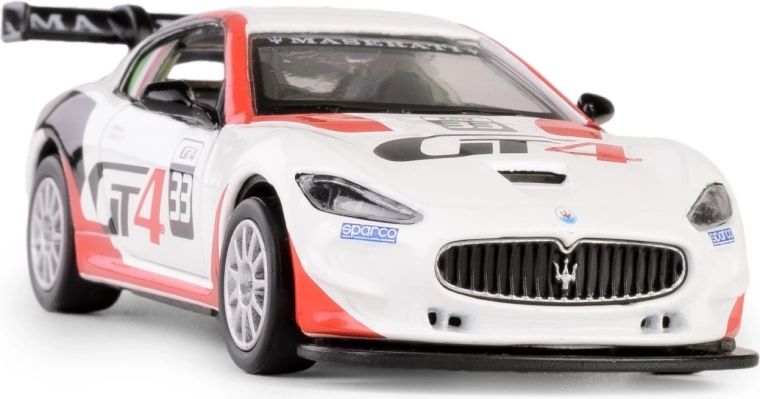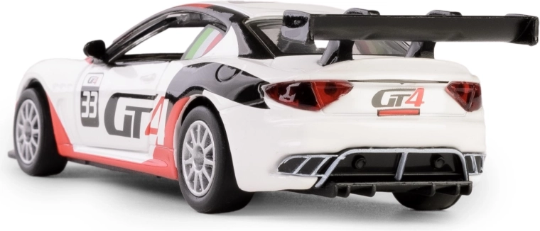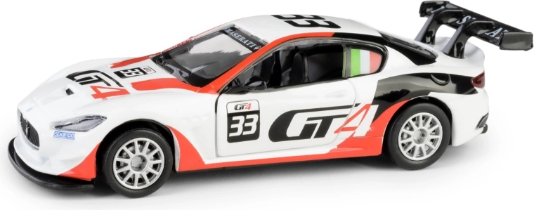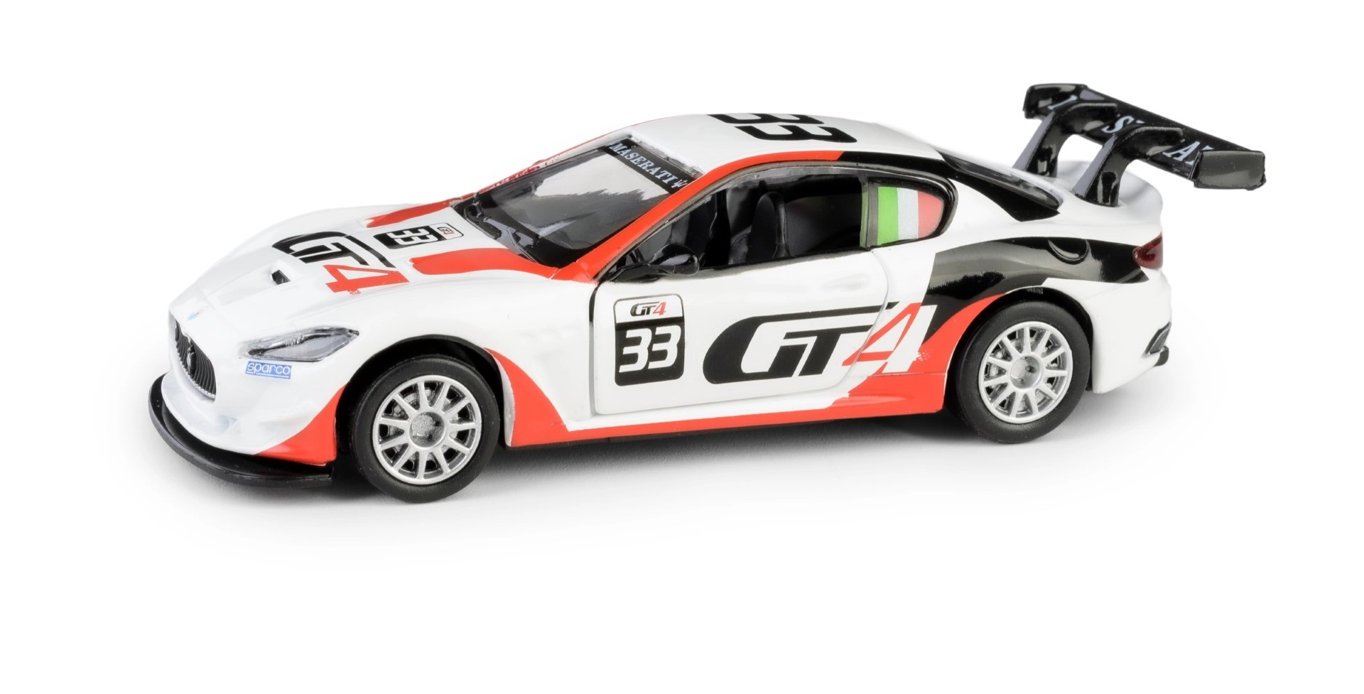 Modello auto con licenza MASERATI GranTurismo MC GT4 in scala 1:43 che piacerà a bambini e collezionisti. Offre una combinazione di metallo e plastica per una lunga durata, porte apribili, pneumatici in gomma e meccanismo pull-back per una guida divertente. Lavorazione di qualità, dettagli realistici e sicurezza conforme CE rendono questo modello bianco una scelta eccellente sia per il gioco che per l’esposizione.