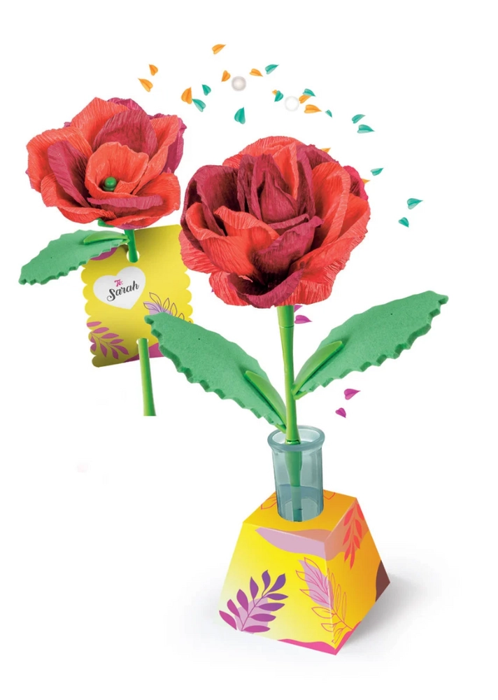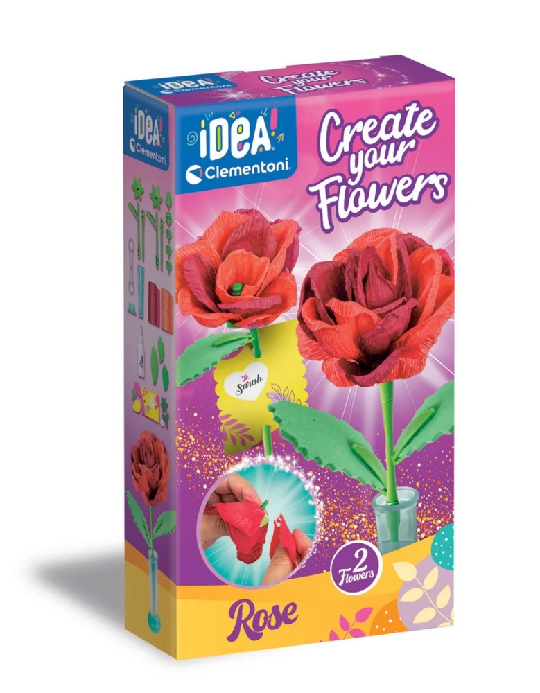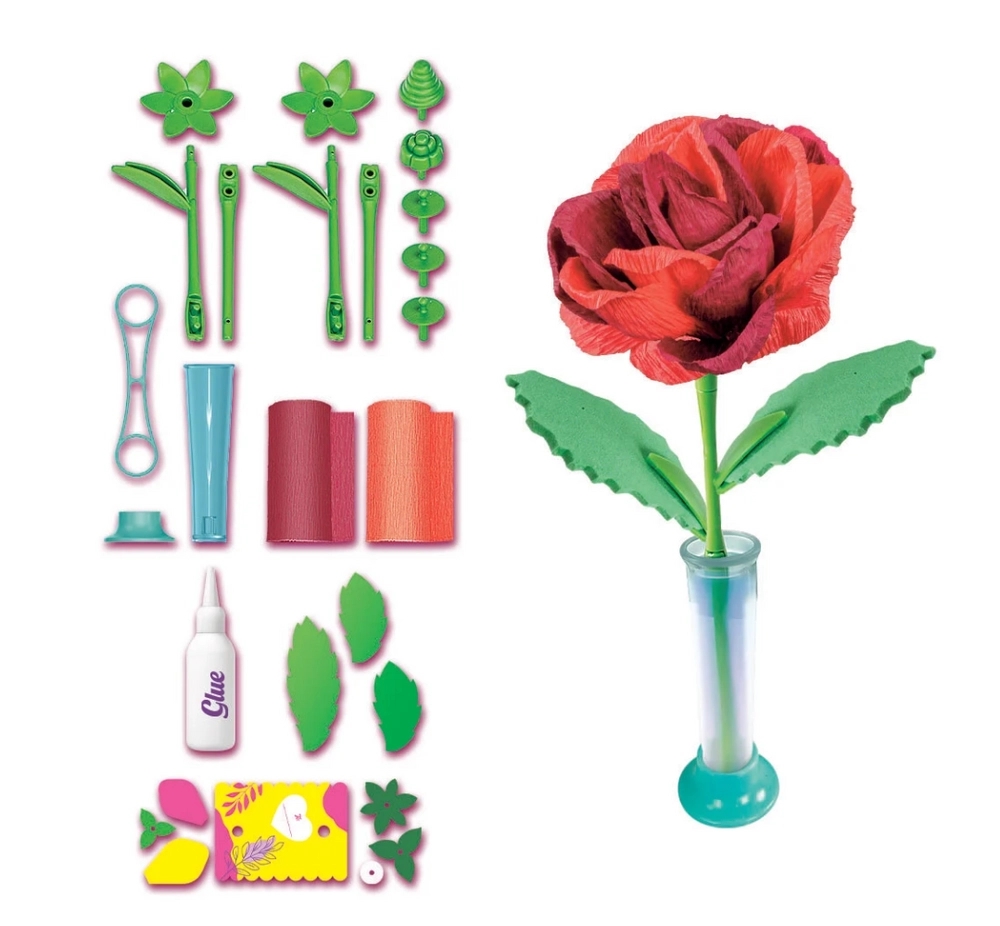 Scopri un’attività creativa che diverte e sviluppa le abilità. Il set Mini fabbrica di fiori – rose contiene tutto il necessario per realizzare due eleganti rose di carta, inclusi petali, steli e foglie. I fiori finiti si collocano facilmente in un supporto decorativo in cartoncino, personalizzabile con nome o dedica.
