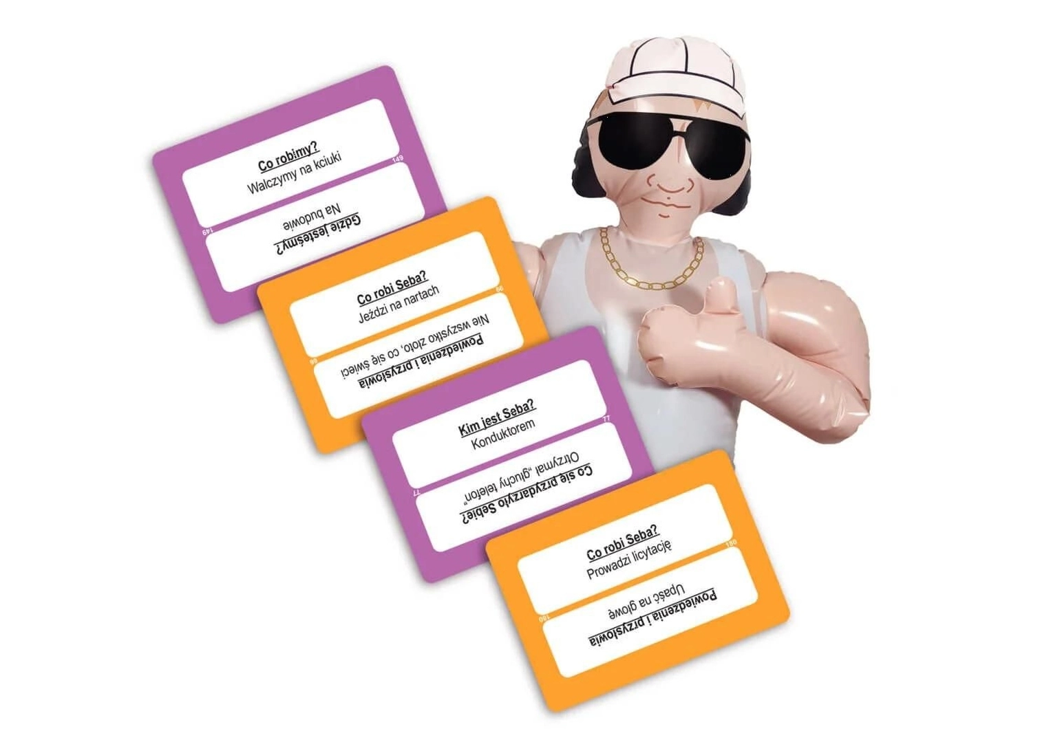 Il gioco può inoltre essere combinato con il popolare “Kim jest Janusz?” per creare una sfida a squadre tra Team Seba e Team Janusz. Otterrai così ancora più carte, varietà e situazioni infinitamente divertenti.