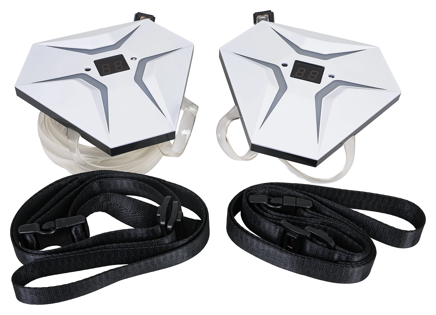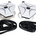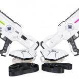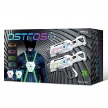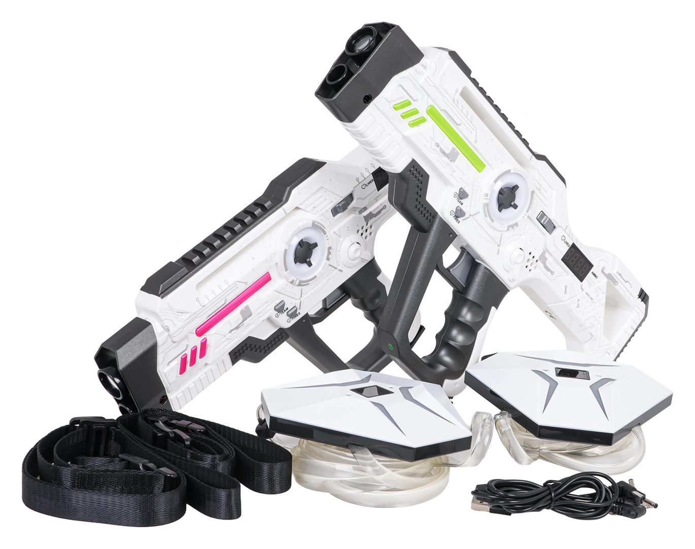 Le batterie integrate e il cavo USB in dotazione con 4 connettori consentono di caricare tutte le parti contemporaneamente. Le pistole durano fino a 6 ore, i gilet circa 3 ore.