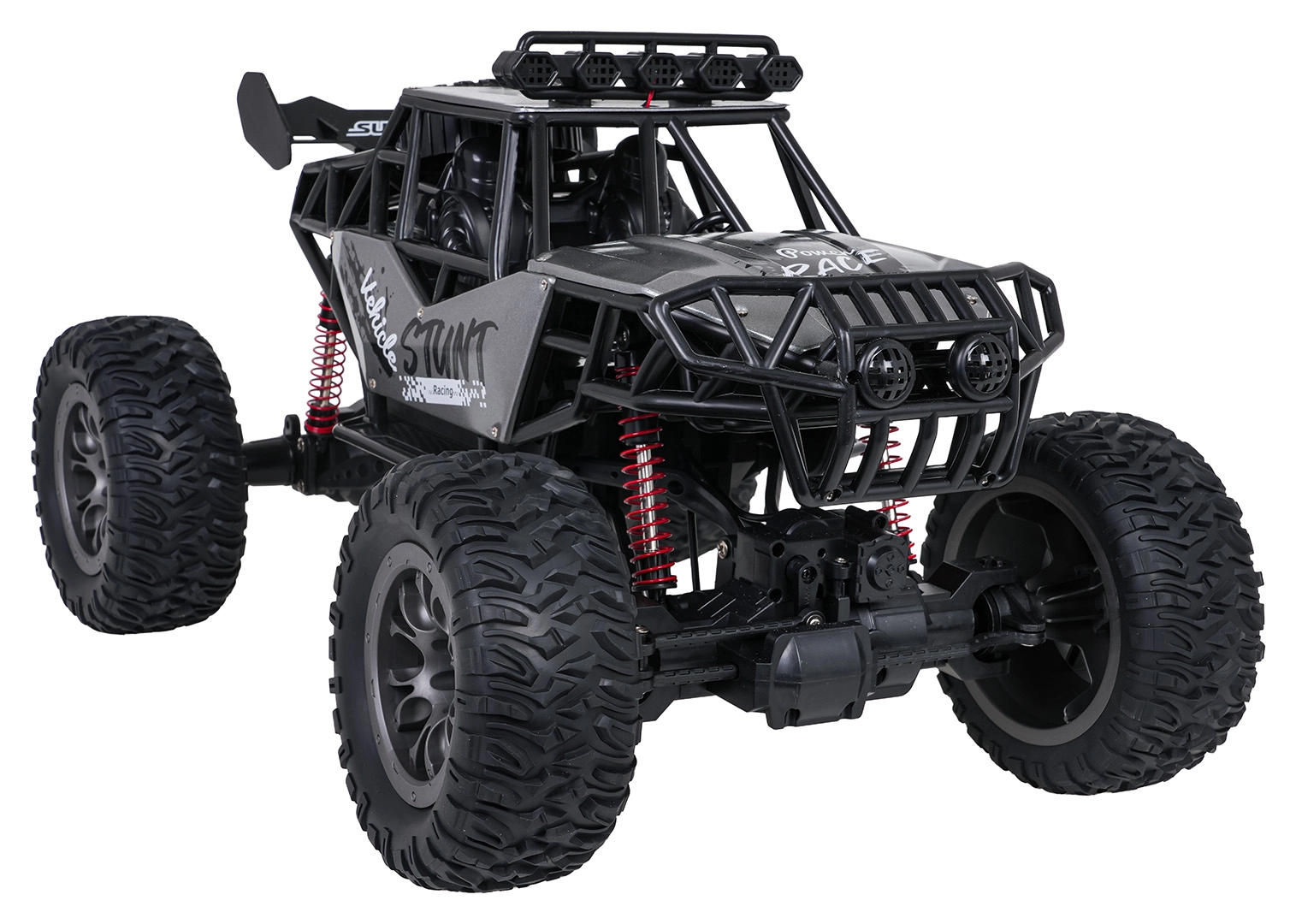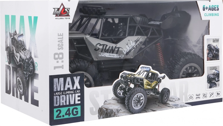 Goditi una guida fuoristrada ricca di azione con l’RC crawler in scala 1:8. La carrozzeria in metallo e le sospensioni a molla assicurano grande resistenza, mentre le grandi ruote antiscivolo con battistrada profondo offrono ottima trazione su ghiaia, erba e sabbia. Il radiocomando a 2,4 GHz garantisce un controllo fluido senza interferenze e una portata fino a 50 metri.