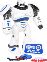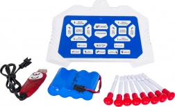 La confezione include una batteria ricaricabile Ni-Cd da 4,8 V 700 mAh con ricarica tramite USB e un set di 8 dardi con ventosa. Il robot si muove avanti e indietro, gira a destra e a sinistra, sa scivolare ed effettuare una rotazione a 360°. Il tiro dei dardi ha una portata di circa 5 m. La modalità DEMO mostra tutte le capacità con un solo pulsante e la regolazione multilivello del volume garantisce un uso confortevole in casa e all’aperto.