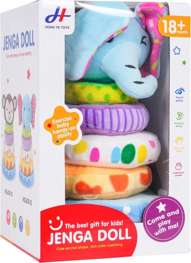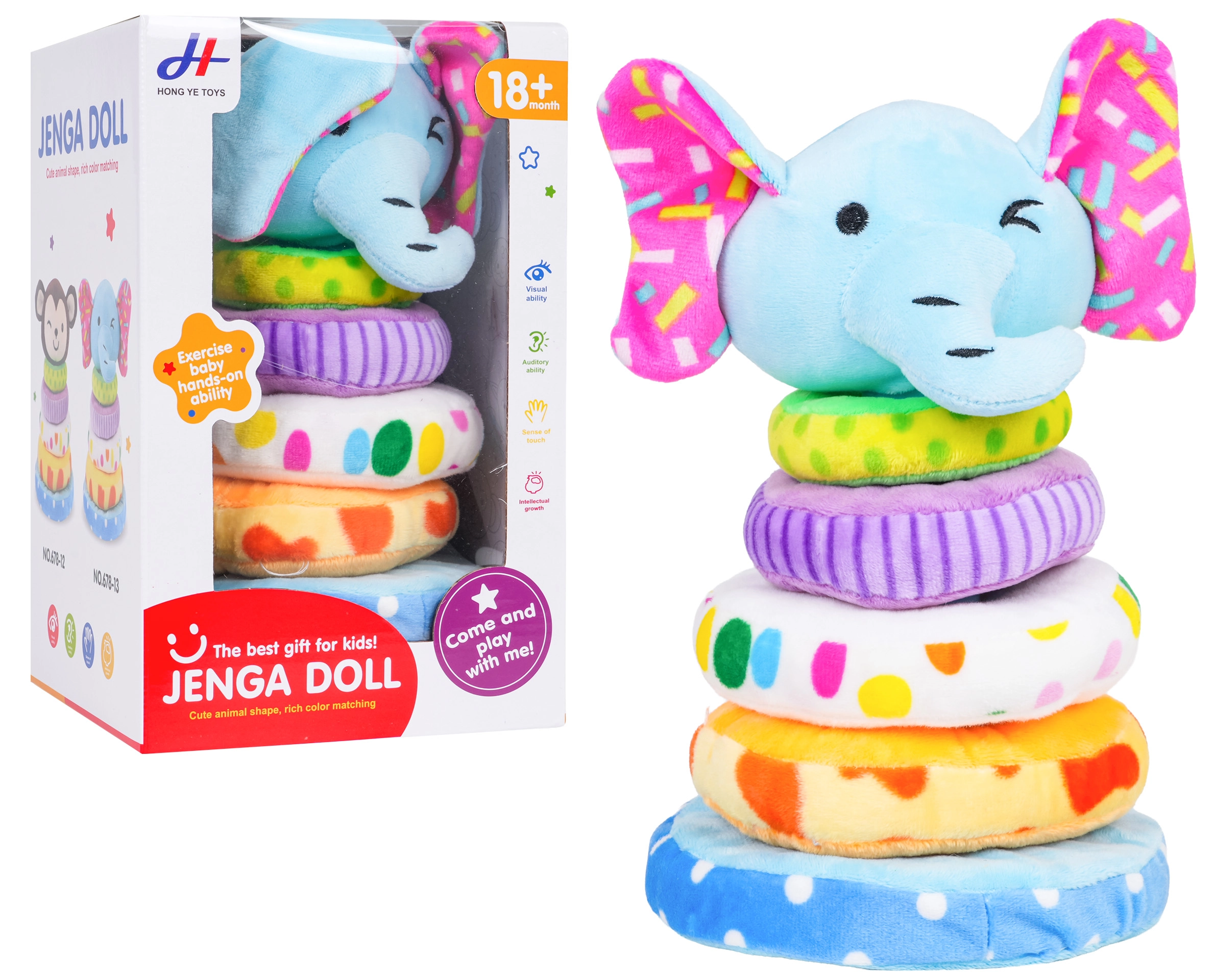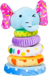 Giocattolo carino e sicuro per bambini dai 18 mesi: piramide morbida impilabile con elefante in soffice peluche. Favorisce la motricità fine, la coordinazione occhio‑mano, il riconoscimento di colori e dimensioni e, grazie alla testa dell’elefante con squeaker integrato, motiva all’esplorazione. Colori e motivi vivaci attirano l’attenzione; la morbidezza è ideale per un gioco sicuro.